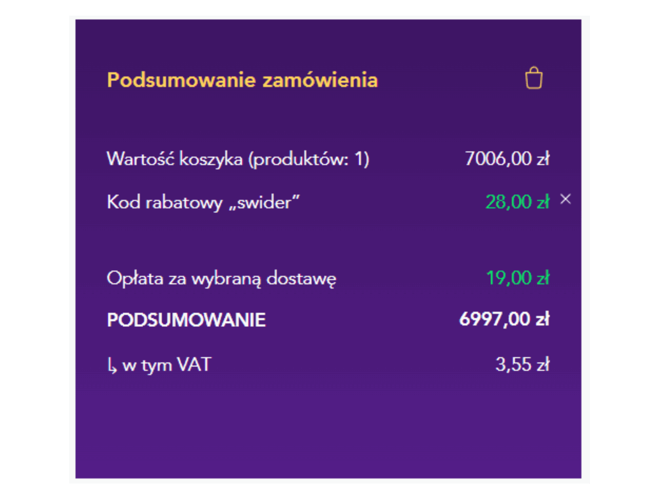 Po prawej stronie zobaczysz podsumowanie Twojego zamówienia wraz z przyznanym Ci rabatem. Sprawdź czy wszystko się zgadza.